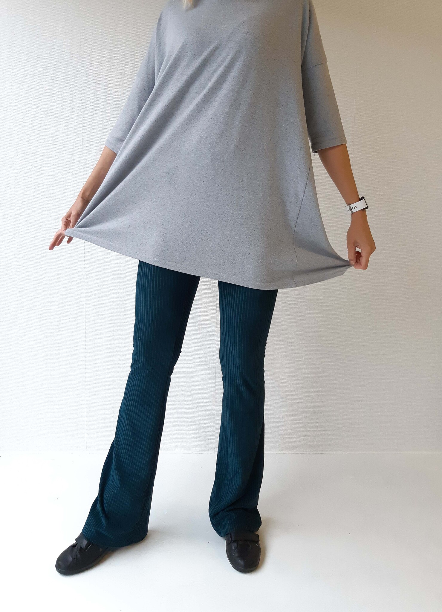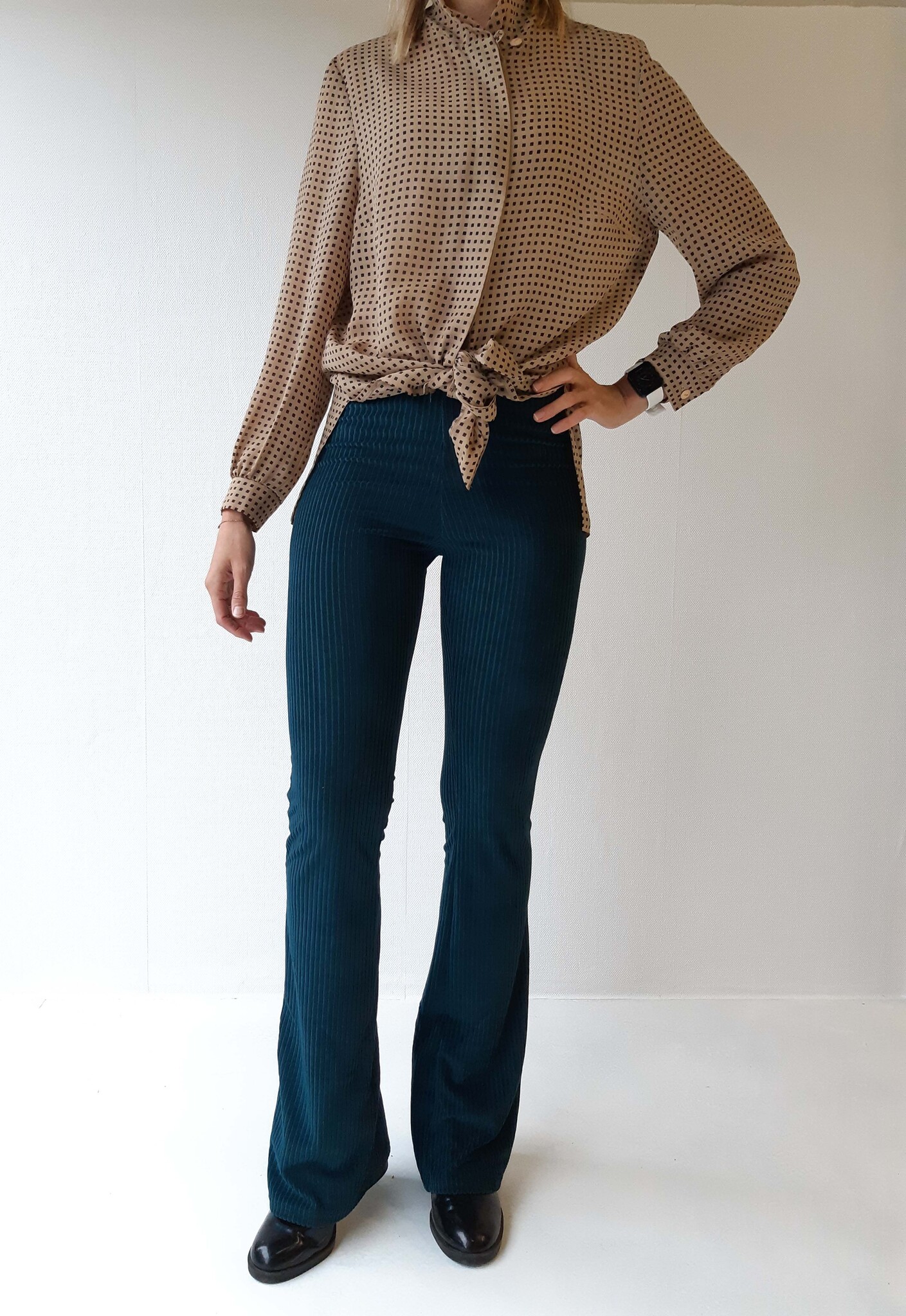 Wunderschöne petrolfarbene Schlaghosen aus Stretch-Rippstoff. Der Stoff ist dehnbar und besteht hauptsächlich aus Polyester mit Stretch, herrlich bequem und weich. Sie schrumpft nicht, verblasst nicht und fühlt sich angenehm elastisch an.