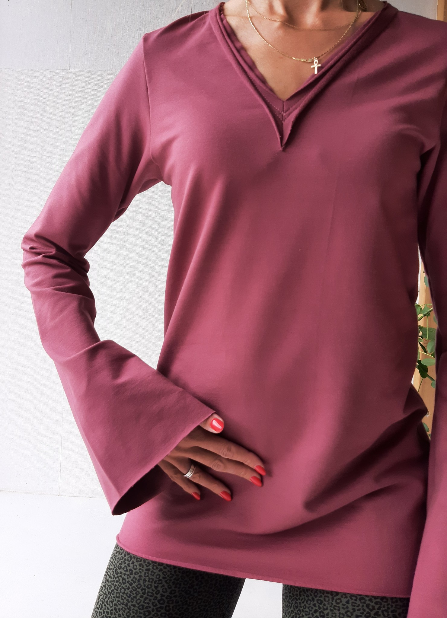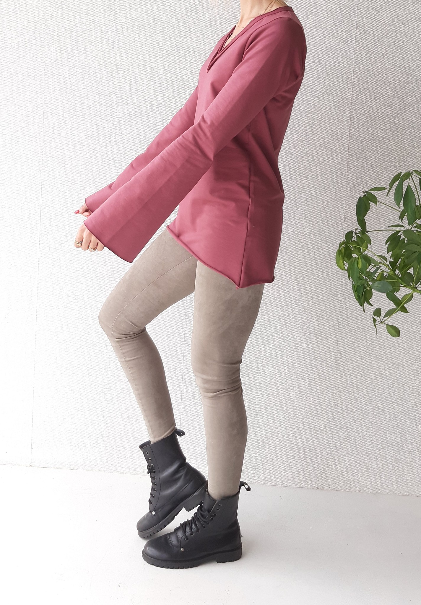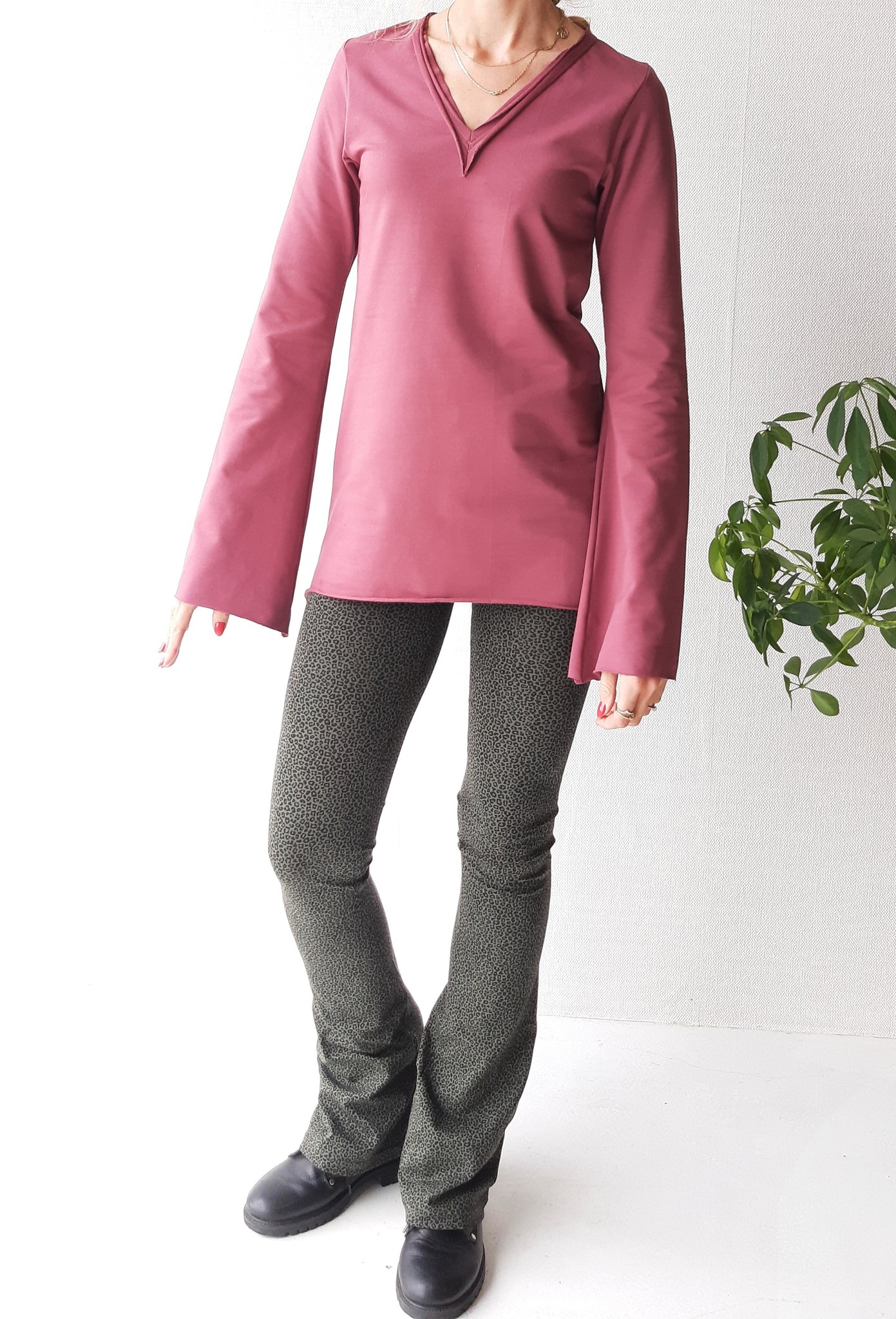 Flatterend model en heel fijn, die extra lange mouwen. Ik hou alleen niet zo van zo’n onafgewerkte “look” en laat het shirt en de mouwen zomen door de kleermaker. Jammer dat hij kan krimpen in de was.